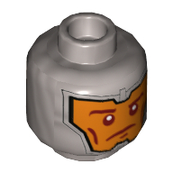 Minifig Head Royal Guard / Soldier, Balaclava, Orange Face, Dark Red Eyebrows and Cheek Lines, Determined / Raised Eyebrow Print | Flat Silver | 1 | 0 | 0 |