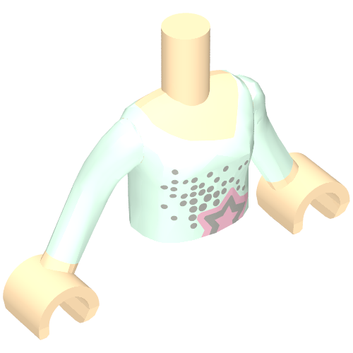 Minidoll Torso Girl with Light Aqua Long Sleeve Blouse with Dots and Star Print, Light Nougat Hands | Light Nougat | 1 |